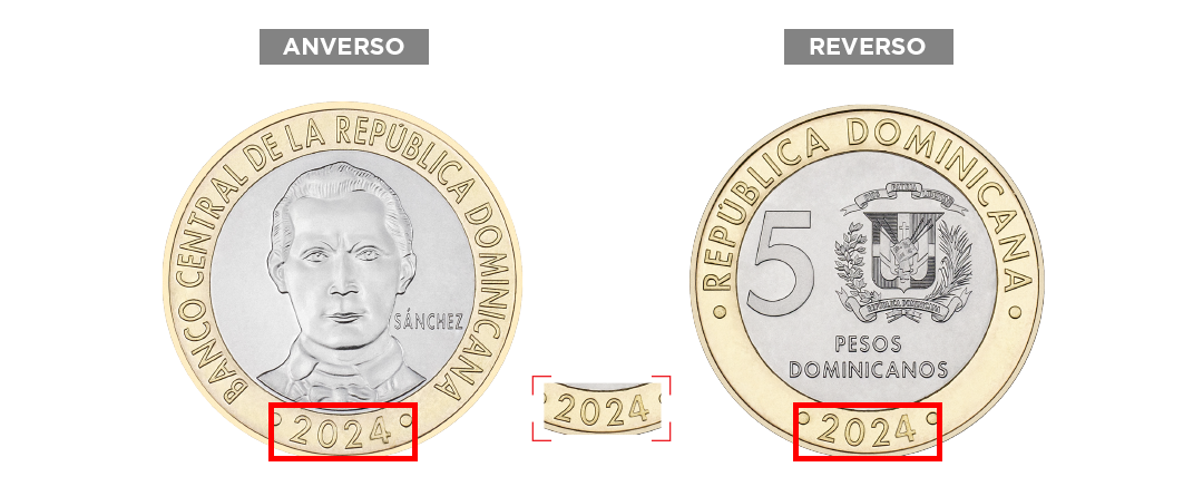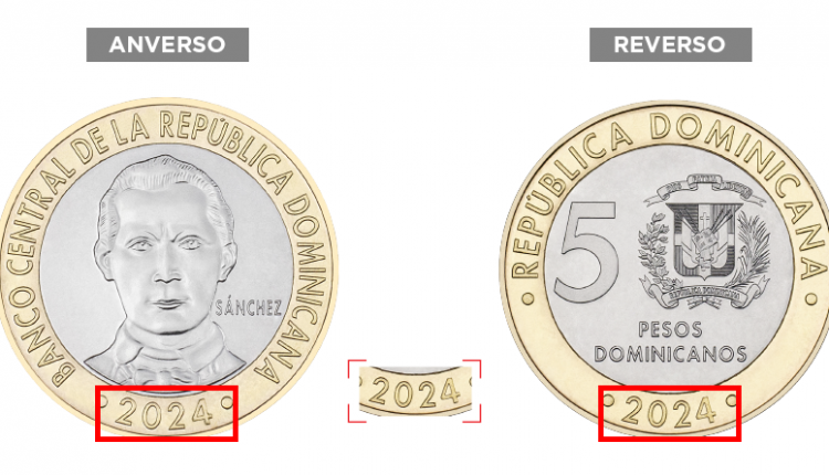 DISTRITO NACIONAL, República Dominicana.-. El Banco Central anunció que, a partir del próximo lunes, circularán monedas metálicas de la denominación de RD$5.0, de año 2024.