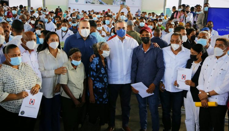 “A esto, debemos sumarle otros beneficios como la seguridad jurídica de su parcela o vivienda, el incremento del valor de sus inmuebles, y que podrán en adelante acceder al crédito formal a través de las entidades financieras del mercado, entre otros beneficios”, manifestó el presidente Abinader.