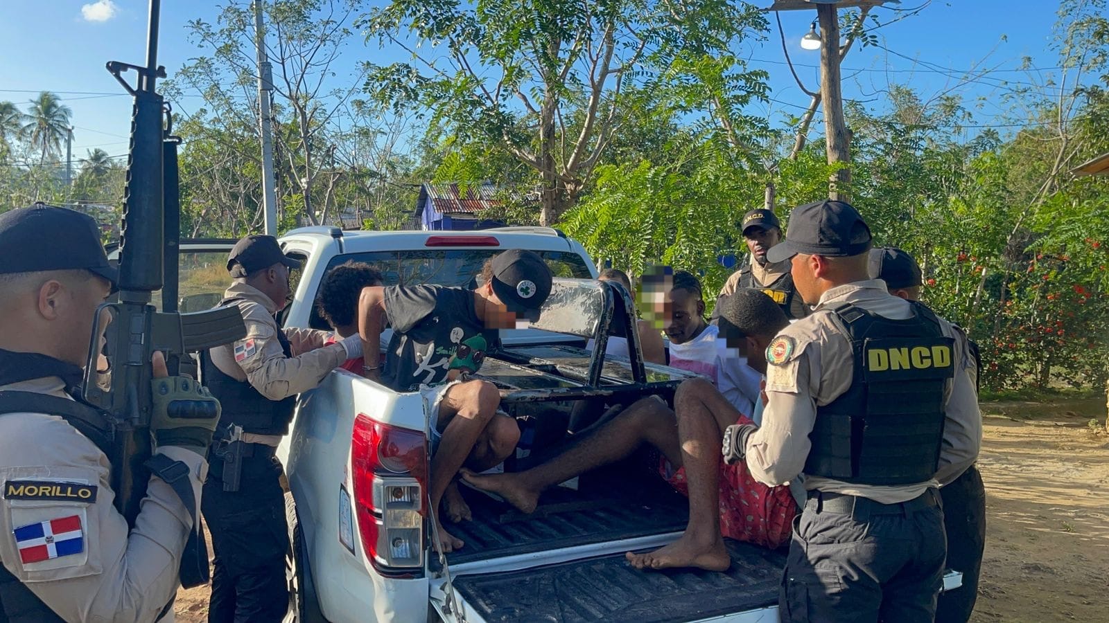 Durante las interdicciones, fueron arrestados Erick Reynoso Rosario (Barraba), buscado por tentativa de homicidio y otros delitos, así como Yan Carlos Medina (Yanki), Jose Daniel Mata, y Jonathan Pena Regalado, señalados como reconocidos microtraficantes de drogas, que según informes mantenían preocupados e intranquilos a los residentes en esa zona.
