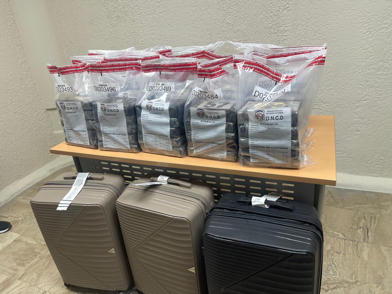 DISTRITO NACIONAL (República Dominicana).-. Agentes de la Dirección Nacional de Control de Drogas (DNCD) y miembros del Cuerpo Especializado de Seguridad Aeroportuaria (CESAC), apoyados por personal de Aduanas (DGA), coordinados por el Ministerio Público, confiscaron un alijo de 75 paquetes de presunta cocaína, en el Aeropuerto Internacional de Punta Cana, provincia La Altagracia.