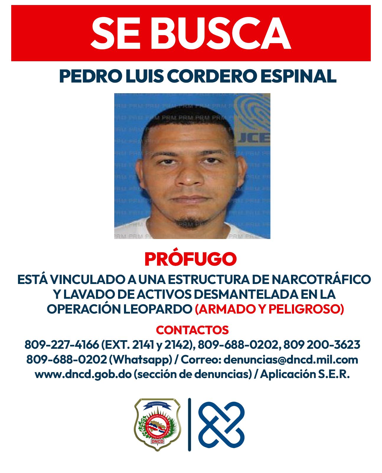 DISTRITO NACIONAL, República Dominicana-. El Ministerio Público y la Direccion Nacional de Control de Drogas (DNCD) emitieron este domingo una alerta de búsqueda y captura contra tres hombres, señalados como cabecillas de una red de narcotráfico internacional y lavado de activos, desmantelada a través de la Operación Leopardo.