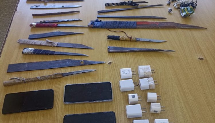 Durante la requisa se ocuparon 36 objetos cortopunzantes, cinco teléfonos celulares, 17 cables USB, una fundita de tabaco y ocho porciones pequeñas, 11 cabeza USB, tres encendedores y tres auriculares con cable.