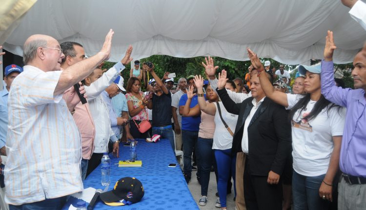 BONAO, provincia Monseñor Nouel, República Dominicana.- El expresidente Hipólito Mejía juramentó este viernes, en el movimiento H20, que respalda su candidatura presidencial, al director del Distrito Sabana del Puerto, junto a cinco regidores y decenas de dirigentes del Proyecto Luis Abinader en Juma-Bejucal, Bonao.