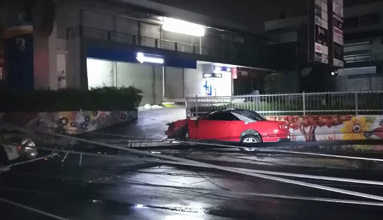 Conductor de vehículo impacta tres postes tendido eléctrico y causa avería en Santo Domingo Norte