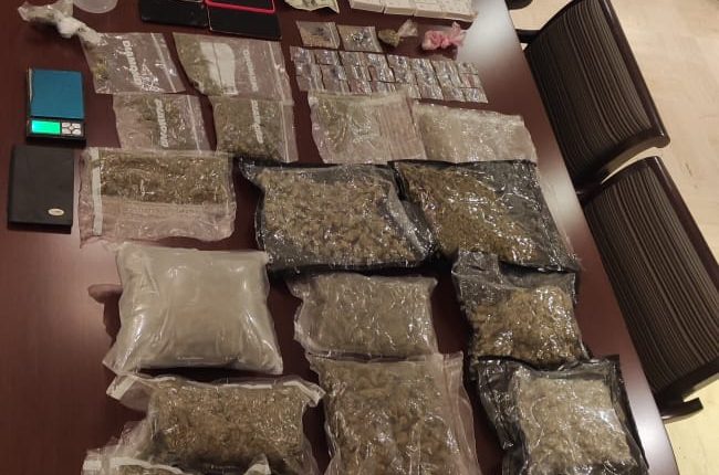 Al momento de su detención al imputado se le ocuparon en el closet de la habitación principal, 14 paquetes de marihuana en una maleta, varias porciones y semillas del vegetal en fundas plásticas, 20 cartuchos, cuatro celulares, una laptop, un rollo de cinta adhesiva, una máquina de empaque al vacío, armas blancas, una balanza, entre otras evidencias.
