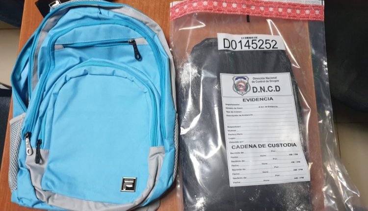 Los agentes de la DNCD y miembros de agencias de inteligencia, procedieron a inspeccionar el equipaje, encontrando una mochila con un doble fondo, donde se incautó una lámina con un peso preliminar de 2.83 kilogramos, de un polvo que aparenta ser cocaína.