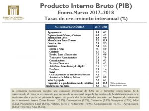 Economía dominicana creció 6.4% en el primer trimestre de 2018