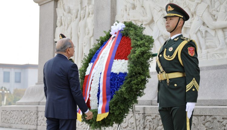 Previamente, Danilo Medina había depositado una ofrenda floral en el Monumento de los Héroes del Pueblo en la Plaza de Tiananmen.
