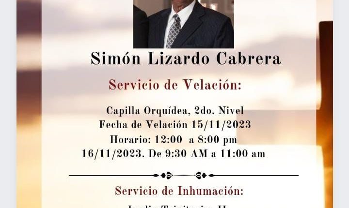 El Partido de la Liberación Dominicana (PLD) informó sobre el fallecimiento de Simón Lizardo Cabrera, quien es el padre de los miembros del Comité Político Cristina Lizardo y Simón Lizardo.