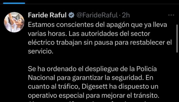 Asimismo, el director de la DIGESETT reiteró su llamado a los conductores a mantener la calma, respetar las señales de los agentes y conducir con prudencia, mientras se restablece el sistema eléctrico y los semáforos vuelven a operar con normalidad.