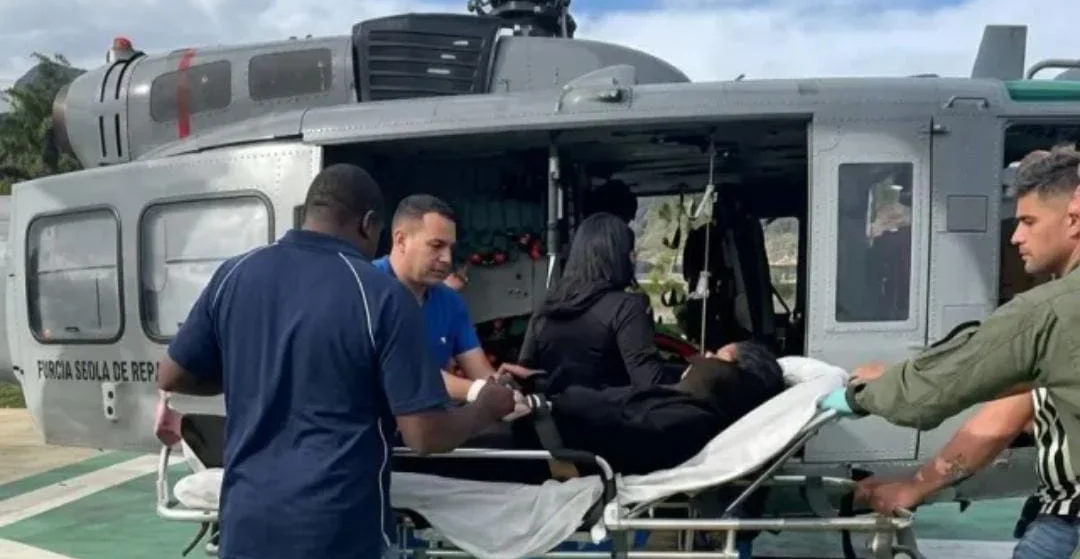 El paciente, quien conforme a los reportes médicos preliminares habría sufrido una rotura de fémur, recibió los primeros auxilios en la misma complejidad de la zona, y posteriormente fue trasladado al hospital traumatológico en un helicóptero de la Fuerza Aérea (FARD).