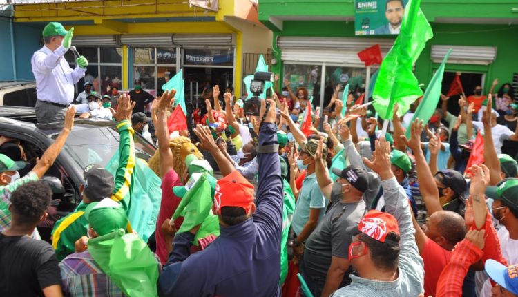 En Espaillat, fue recibido por cientos de personas que lanzaban consignas, exhibían todo tipo de prendas verdes y demás objetos en apoyo al líder de la FP y los candidatos a diputados y senadores del partido y fuerzas aliadas.