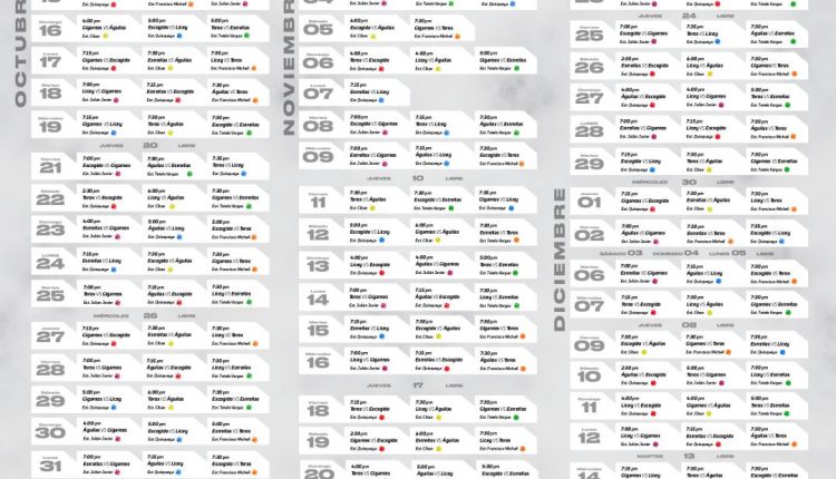 La serie regular culminaría el viernes 16 de diciembre y tendrá 10 días libres, incluido el día de Acción de Gracias, además de los días 3, 4 y 5 de diciembre, reservados para la Federación Nacional de Peloteros Profesionales (FENAPEPRO) para su actividad propia del Juego de Estrellas.