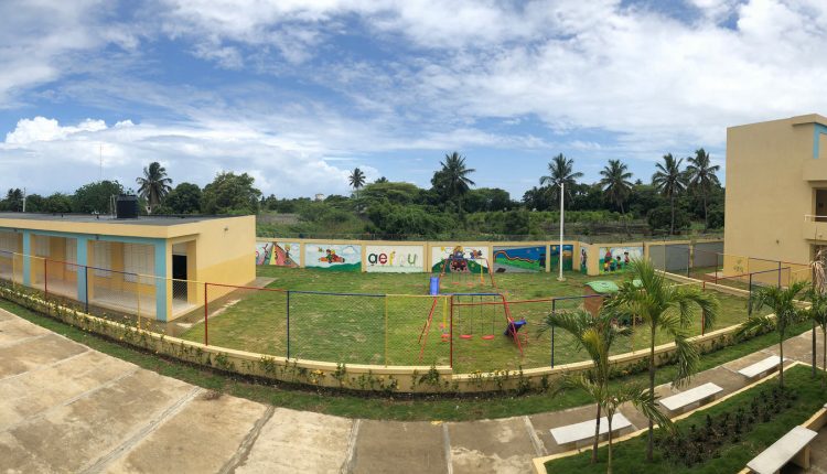 Cuenta con 24 aulas espaciosas, dos canchas, biblioteca, cocina-comedor y otras comodidades, razones por la que los niños y niñas de aquí saltan de felicidad.