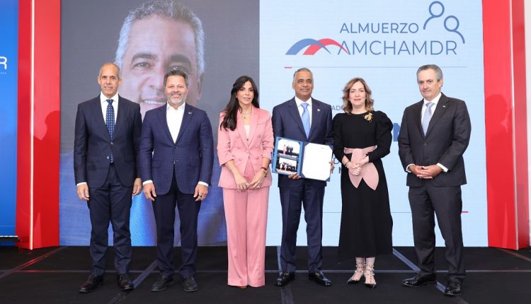 Durante su intervención, el ministro felicitó a Francesca Rainieri, quien se convierte en la primera mujer en presidir la AmchamDR en sus más de 100 años de historia, reconociendo este hito como un símbolo de avance institucional y liderazgo femenino en el ámbito empresarial.