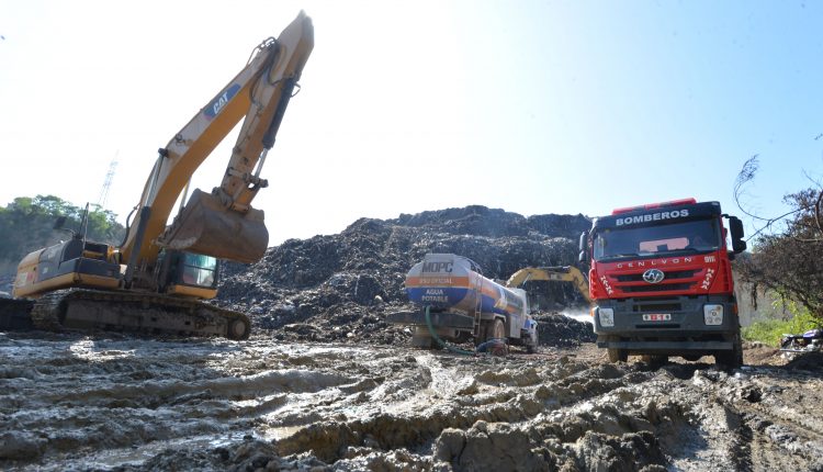 El pasado viernes, el MOPC reforzó la cantidad de equipos pesados y brigadas que participaron en las labores de extinción del vertedero del municipio, con la participación de diez camiones-cisterna, dos retroexcavadoras, un bulldozer y brigadas integradas por más de un centenar de hombres provistos de mini-cargadores, carretillas y rastrillos.