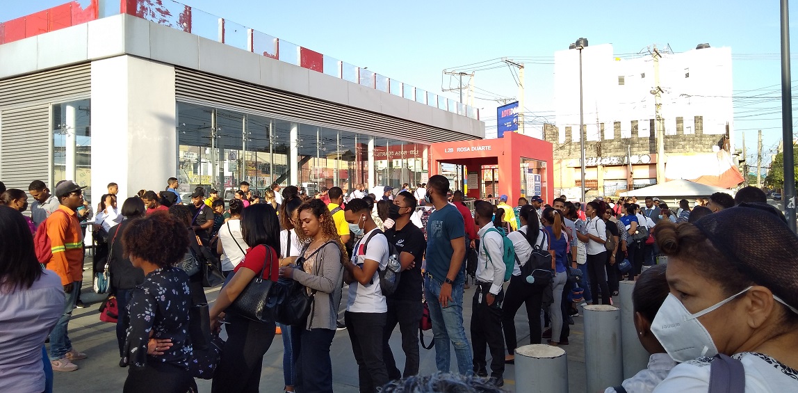 En la estación Ulises Francisco Espaillat, ubicada en la intersección de las avenidas Winston Churchill y John F. Kennedy, se ubicaron decenas de personas con desesperación y en espera del establecimiento del servicio.