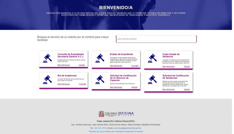 Asimismo, podrá consultar en línea el estado actual de los expedientes en algunos tribunales del Poder Judicial y visualizar a través del portal las sentencias emitidas por la Suprema Corte de Justicia, a partir de 2016.