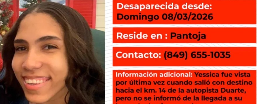 DISTRITO NACIONAL (República Dominicana).-. La Policía Nacional informó que fue localizada sana y salva la joven Yessica Pamela Cruz Valenzuela, de 20 años, quien había sido reportada como desaparecida desde el pasado 8 de marzo, tras salir de su residencia con rumbo desconocido.