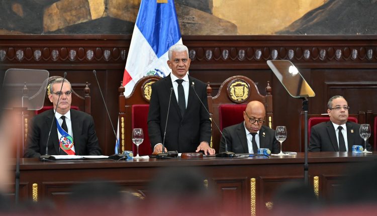 El presidente de la Cámara Alta, Ricardo de los Santos, habló ante la reunión conjunta de ambas cámaras legislativas, realizada en el Salón de la Asamblea Nacional, donde el presidente Luis Abinader acudió para rendir cuentas al país de su cuarta rendición.