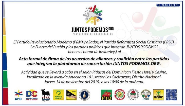 PRM, La Fuerza del Pueblo y otros diez partidos firman acuerdo para postular candidaturas comunes en comicios de 2020